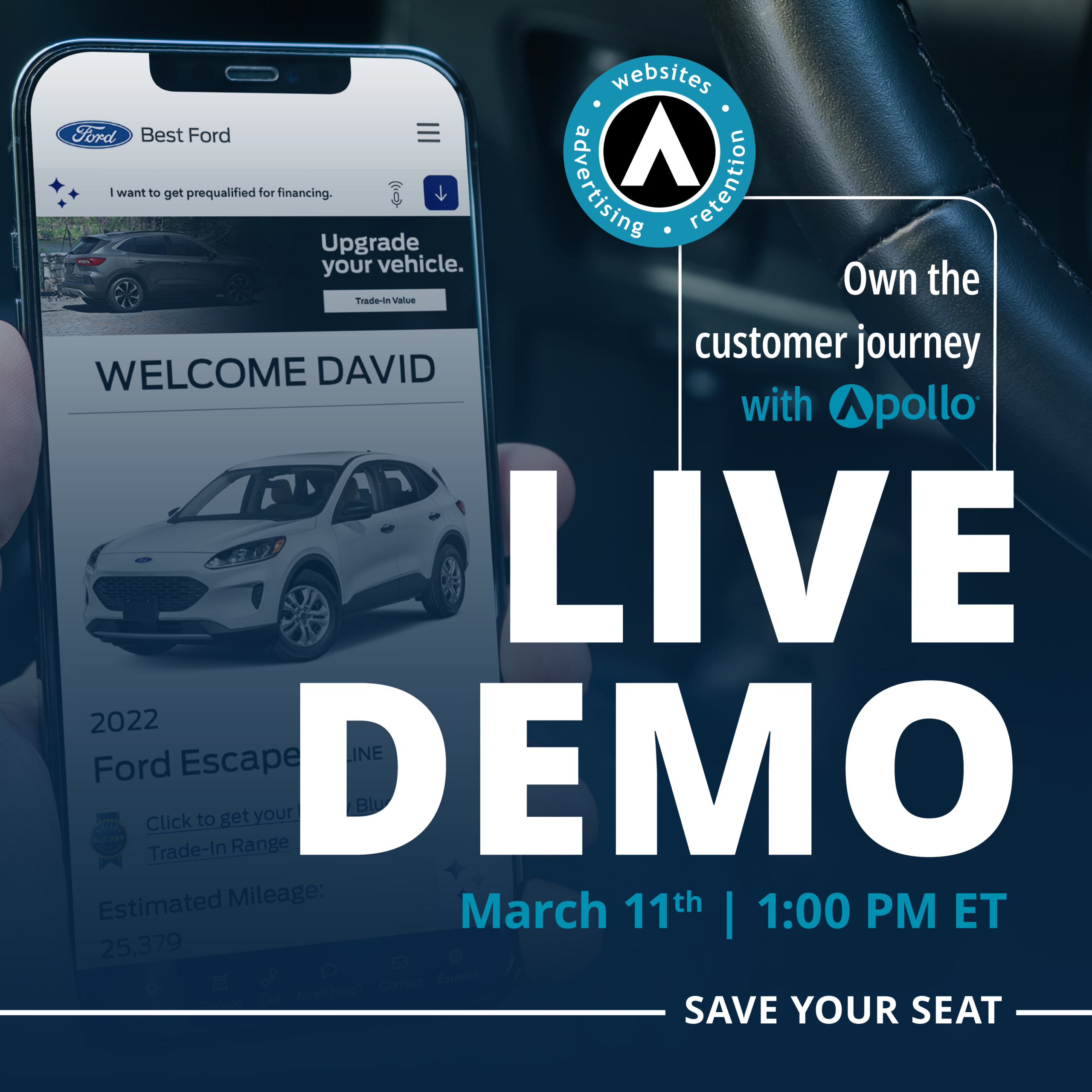 Team Velocity’s Platform Solution Program delivers a comprehensive retailing solution that integrates your website, digital advertising and retention strategies into a single platform. With the Apollo Customer Experience Platform (CXP), Ford Dealers and Lincoln Retailers can give their customers a more personalized, Amazon-like experience that delivers better engagement and more transactions.